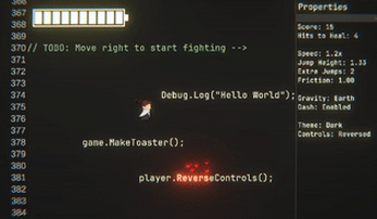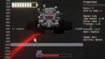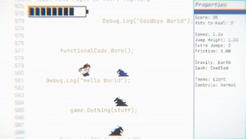 In this 2D platformer action game, fulfill your innermost desires, crush the bugs within your code and ensure a clean and concise document without error!